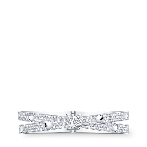 أساور لويس فويتون الذهبية للنساء تبرز الرسغ بلمعانها البراق. وتضم المجموعة كل أنواع الأساور والخلاخيل والسلاسل المزينة بأبرز رسومات الدار الأيقونية: يمكن مزجها وتوفيقها أو تجميعها في الذراع، حيث تضيف هذه الأساور لمسة مرحة ملفتة. المنتجات من مجموعة Blossom و Empreinte و LV Volt مصنوعة من الذهب عيار 18 قيراط ومطعمة بالألماس أو الأحجار الكريمة الملونة.