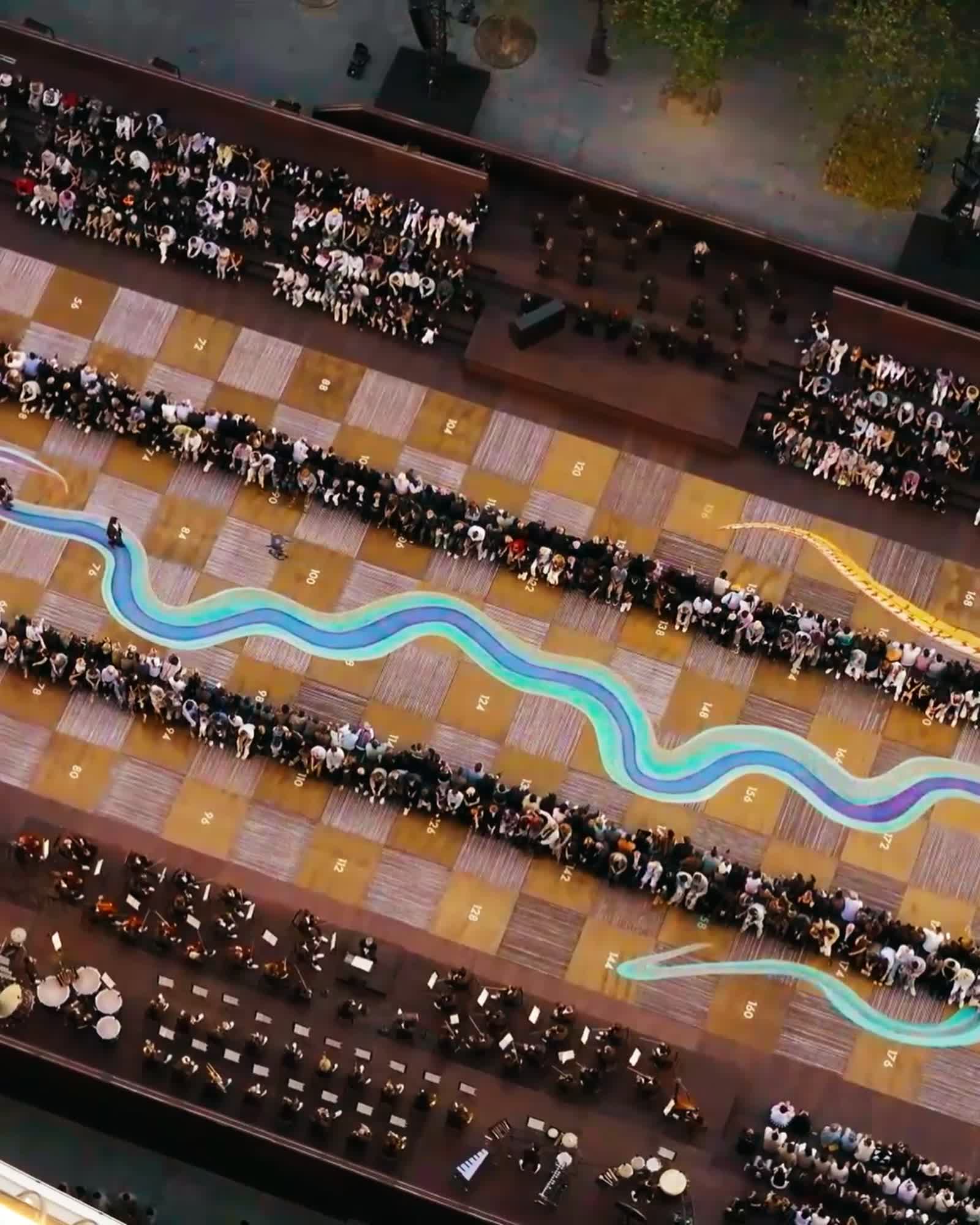 في إطار التعاون السينوغرافي مع ستوديو مومباي، تم تضخيم لعبة الثعابين والسلالم التقليدية إلى بناء بالحجم الطبيعي، وإعادة صياغة نمط دامييه الأيقوني من خلال اندماج ثقافي - وتحويل الجمهور والممثلين إلى لاعبين على مسرح مجازي من الإمكانية.