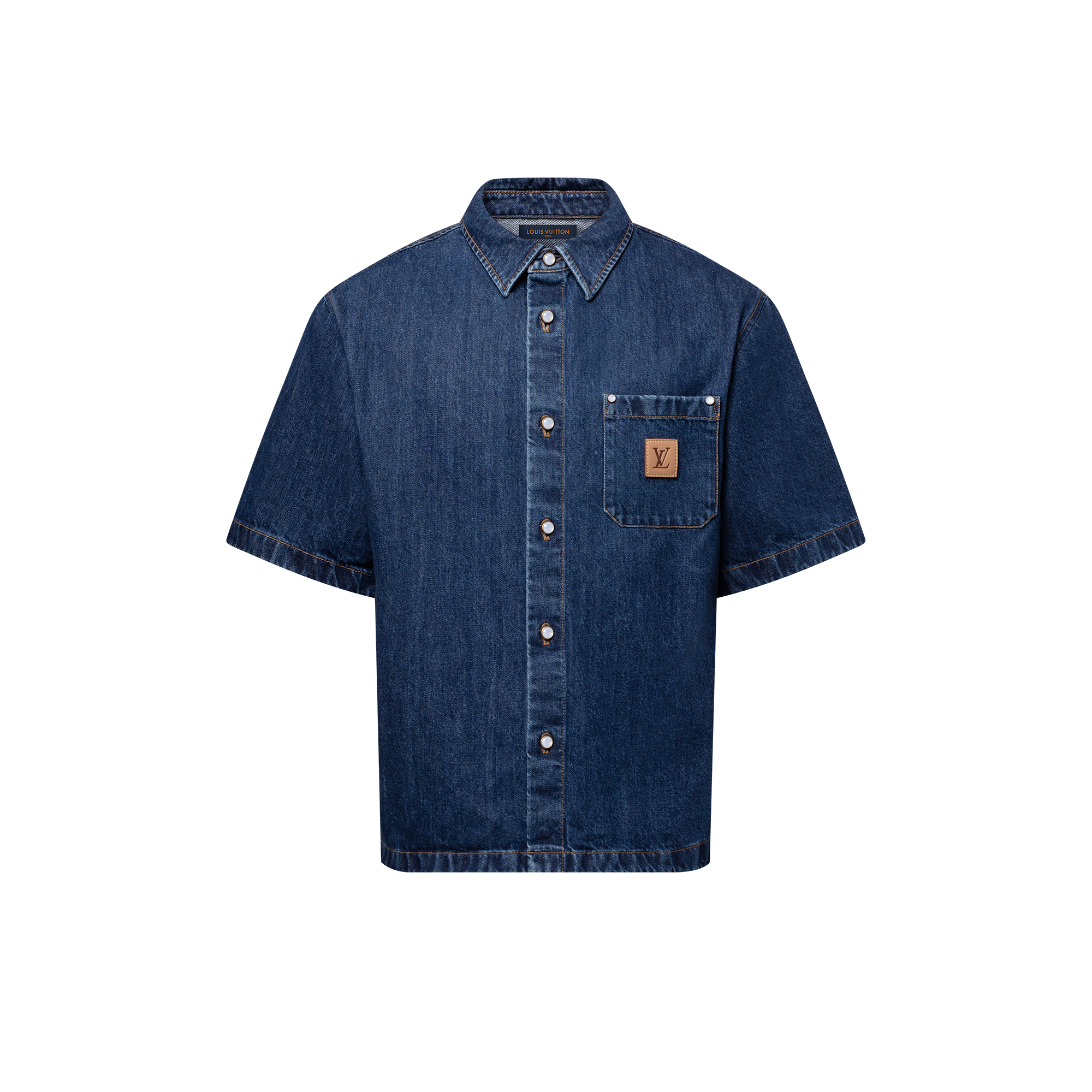 قميص من الدنيم بأكمام قصيرة