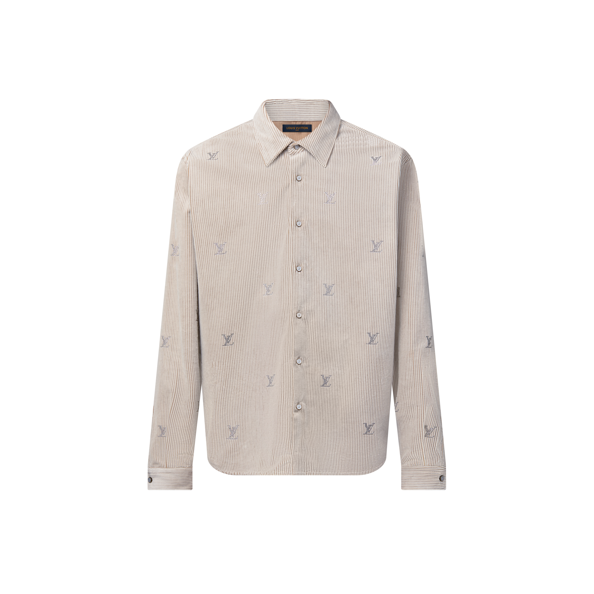 قميص LV Blason بأكمام طويلة، مصنوع من قماش مخملي مضلع ومزخرف
