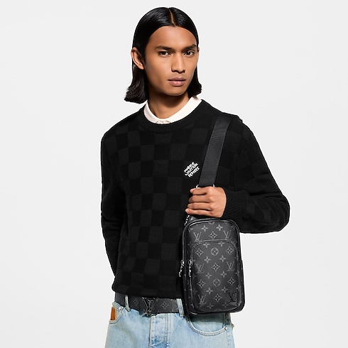 صُنعت حقيبة Avenue Slingbag PM الأنيقة من قماش Monogram Eclipse المقوى. تمتاز هذه الحقيبة الصغيرة التي يمكن ارتداؤها حول الجسم بمساحة رئيسية مزودة بجيب داخلي، إضافة إلى جيب خارجي بسحاب يسهّل الوصول إلى المتعلقات المستخدمة كثيرًا. وتشمل الحقيبة، علاوة على ذلك، جيب صغير مثلث الشكل بسحاب حيث يلتقي الحزام بالحقيبة.