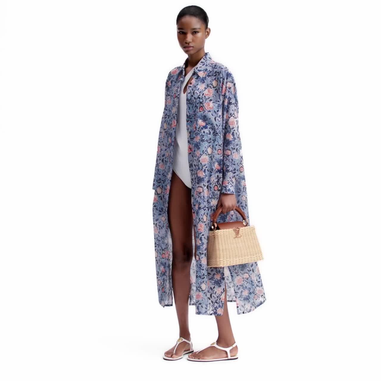 نُسجت حقيبة Capucines BB هذه يدويًا بعناية فائقة من الراتان، حيث يستغرق كل تصميم فريد من نوعه يومين لإكماله. تضيف الحقيبة لمسة ذات طابع جمالي مستوحاة من أجواء المنتجعات، إذ تذكرنا بحقيبة Picnic Trunk التي صممتها الدار عام 1892، وتفتح لتكشف عن بطانة منقوشة. يمكن حمل الحقيبة مع الغطاء المتدلي للداخل أو الخارج، وهي مصممة لتتسع للمستلزمات الضرورية اليومية. تزدان الحقيبة بالأحرف الأولى LV Initials التي تضيف لمسة نهائية مميزة.