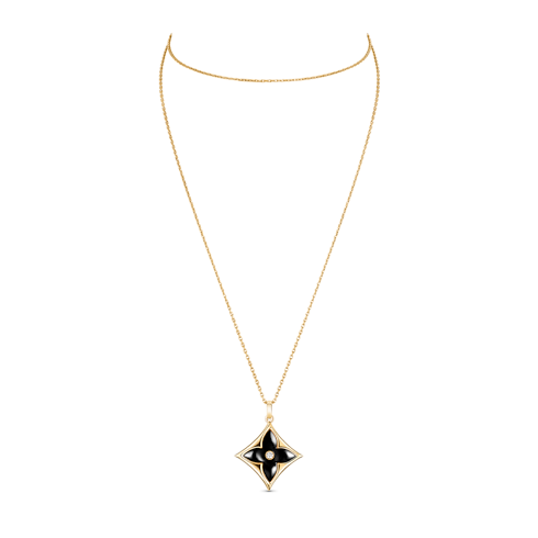 تحتفل مجموعة Color Blossom بزهرة Monogram، التي أبتكرها Georges-Louis Vuitton في عام 1896. تتميز القلادة بدلاية مرصعة بالذهب الأصفر عيار 18 قيراطًا بها بتلات منحوتة من العقيق الأسود اللامع. هذه دلاية مثالية لارتدائها في طبقات وبثلاثة أطوال مختلفة؛ فمقاسها الكبير يكتمل طلته مع القطع الأخرى من مجموعة Color Blossom.