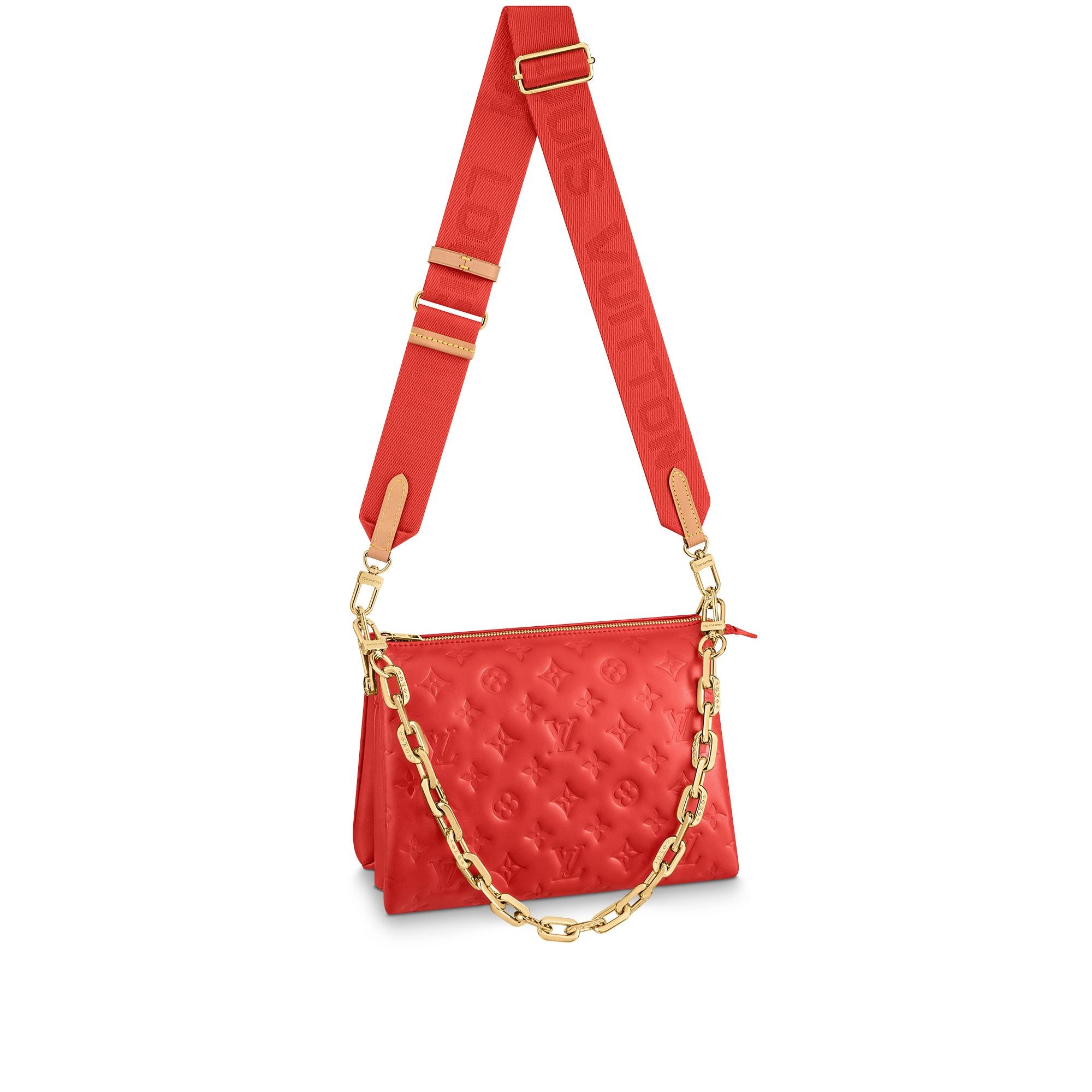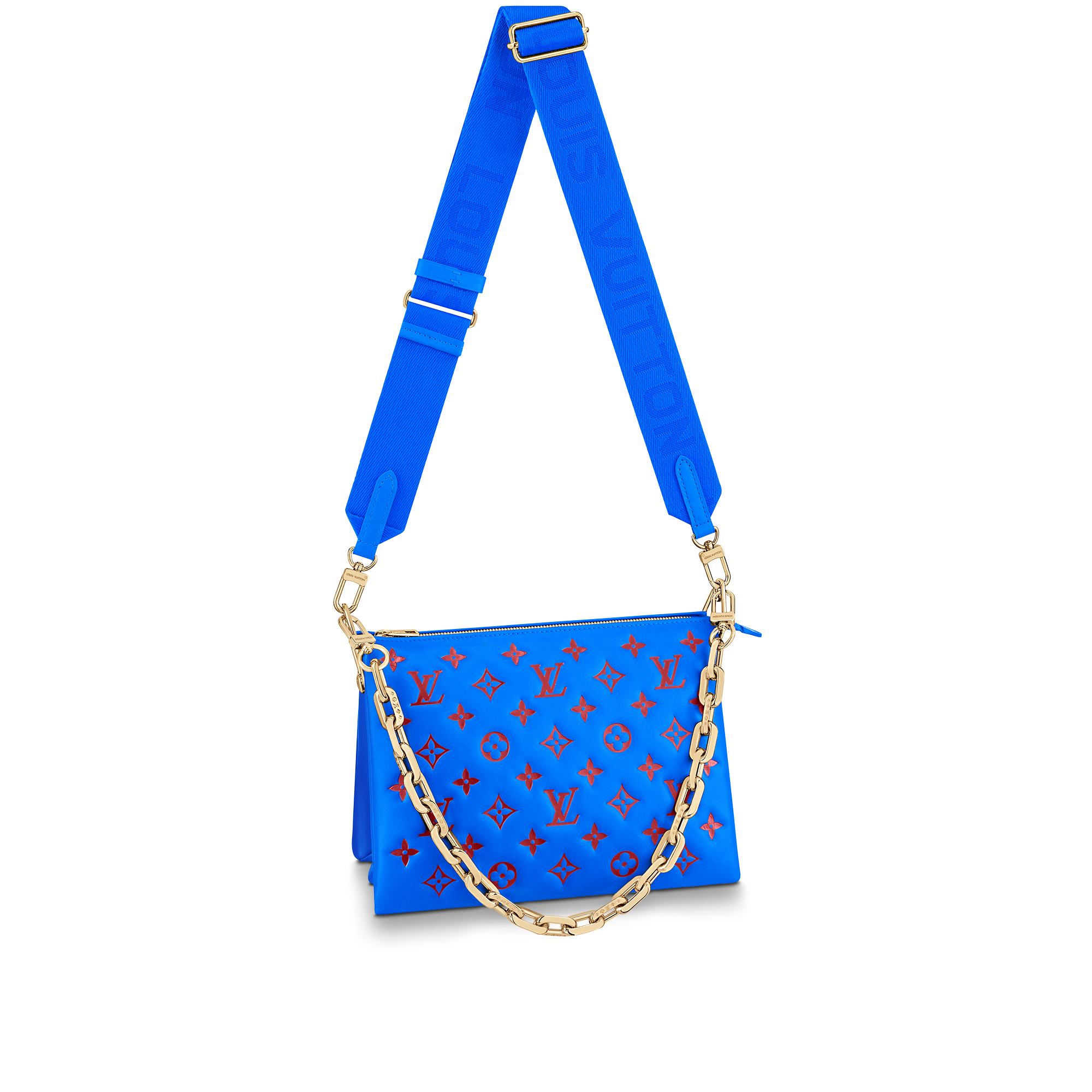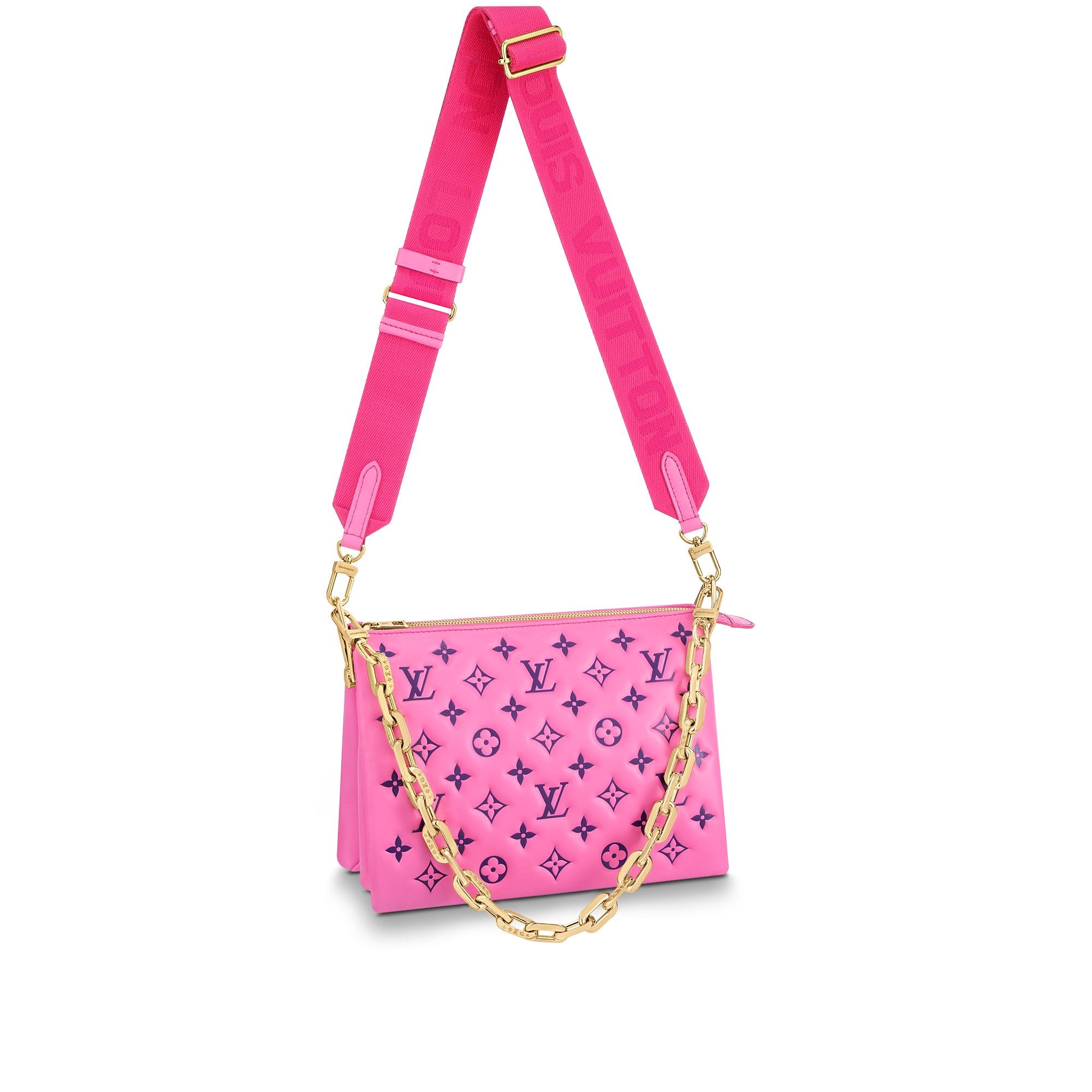 حقيبة اليد Coussin PM مصنوعة من جلد الحمل المنفوخ وتزدان بسلسلة سميكة ذهبية اللون، وتأتي ضمن المجموعة التمهيدية لموسم خريف 2021. تتمتع الحقيبة بألوان زاهية استوحاها المصمم، Nicolas Ghesquière من الطابع الأنثوي المبهج والملفت. ويمكن حمل حقيبة Coussin حول الجسم من خلال حزام الكتف، أو على الكتف باستخدام سلسلتها القصيرة، أو تحت الذراع.