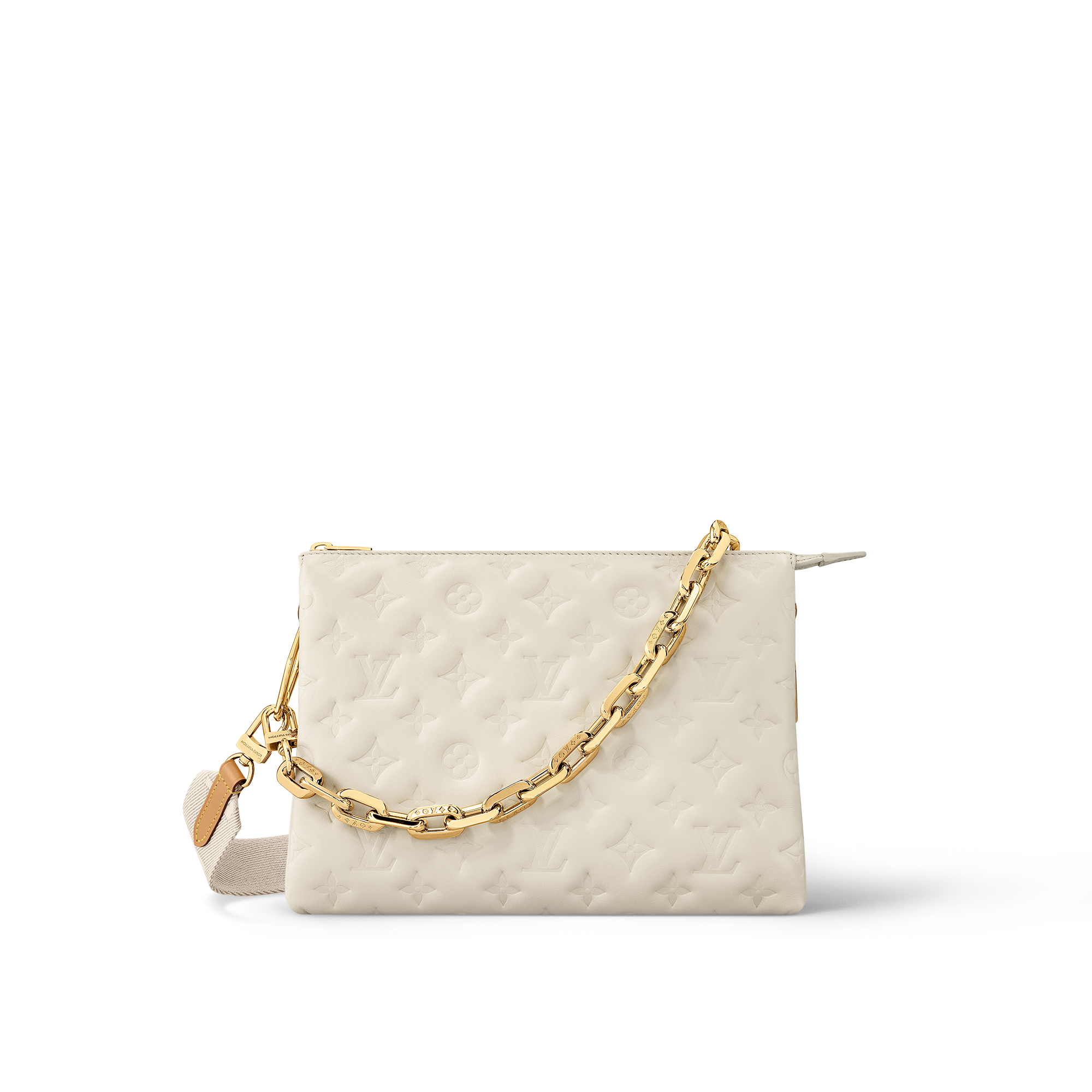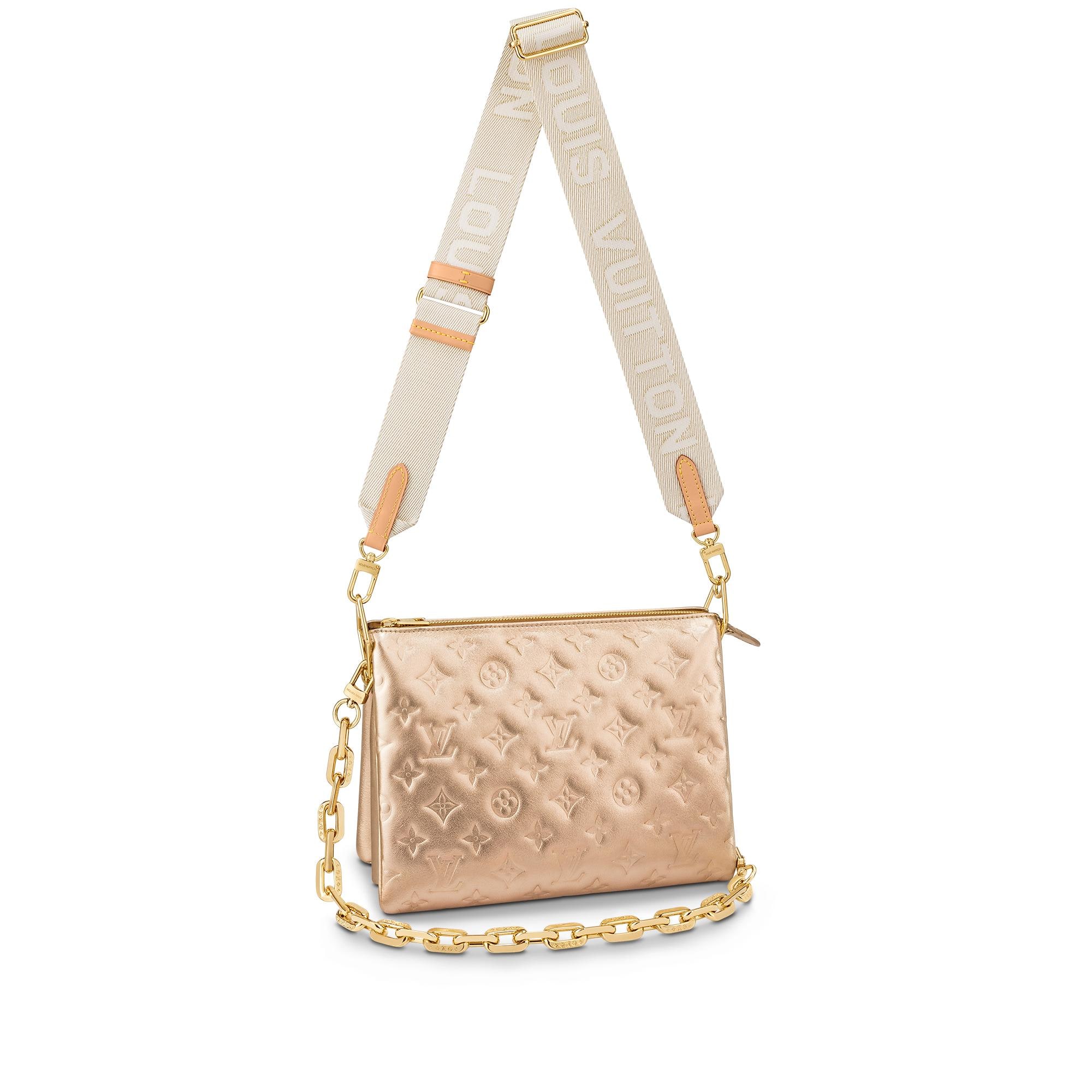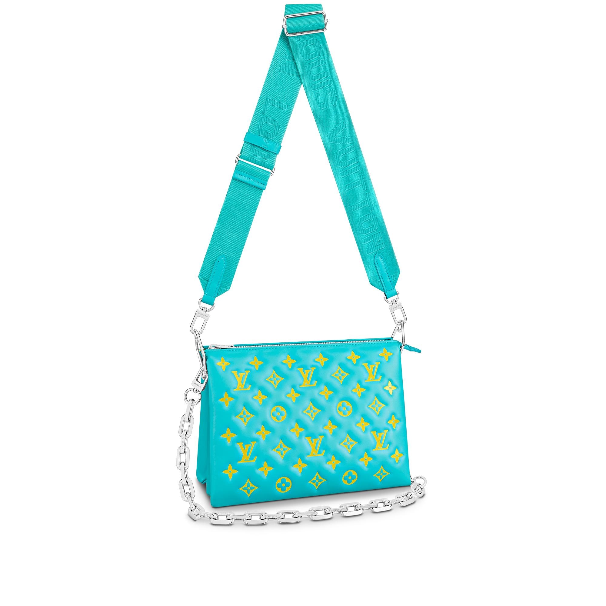 حقيبة اليد Coussin PM مصنوعة من جلد الحمل المنفوخ وتزدان بسلسلة سميكة ذهبية اللون، وتأتي ضمن المجموعة التمهيدية لموسم خريف 2021. تتمتع الحقيبة بألوان زاهية استوحاها المصمم، Nicolas Ghesquière من الطابع الأنثوي المبهج والملفت. ويمكن حمل حقيبة Coussin حول الجسم من خلال حزام الكتف، أو على الكتف باستخدام سلسلتها القصيرة، أو تحت الذراع.