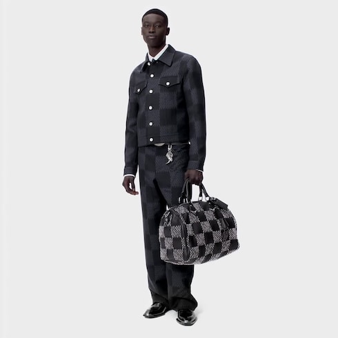 صُنع جاكيت Tucker من صوف فاخر، مما يجعلُهُ إضافةً مميزةً إلى مجموعة ملابس العمل المصنوعة من قماش الدنيم. يزدان الجاكيت بنقش Damier كبير الحجم من الجاكار، ازداد وضوحًا بفضل نمط أنيق يحاكي شكل البذور بتدرجات اللون الأزرق الكحلي، ويتضمن توقيع Marque L.Vuitton déposée على الظهر. تكتمل هذه القطعة العصرية بأزرار بتأثير اللؤلؤ، ويمكن ارتداؤها مع بنطال مطابق.