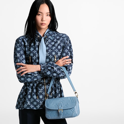 تم تحديث حقيبة Diane الانسيابية لهذا الموسم بلوحة ألوان الأزرق Blue Jean، لتناسب الإطلالات النهارية والمسائية. تتميز الحقيبة بتصميم مصنوع من جلد يحمل نقشة Monogram Empreinte المميزة، مع حزام من النسيج المتباين يمكن إزالته عند الرغبة. كما يزدان هذا التصميم الأنيق بإكسسوارات معدنية ذهبية اللون، وتكشف الحقيبة عند فتحها عن جيب بسحاب لحفظ الأغراض الصغيرة بأمان.