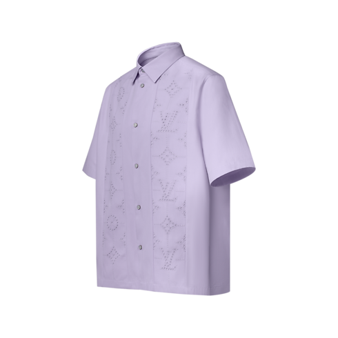 يجسد هذا القميص الأنيق والمنعش، الملون بلون الليلك الفاتح والمزود بأكمام قصيرة، أجواء الربيع المبهجة التي تميز هذه المجموعة. وقد صُنع القميص من نسيج التويل القطني بتأثير الكريب الناعم، ويزدان بحشوات رقيقة بتطريز broderie anglaise تحمل توقيع الدار على الجزء الأمامي. وتضيف الأزرار اللؤلؤية لمسةً لامعةً على هذا التصميم الذي يجمع بين الطابع غير الرسمي والرقي، حيث يمكن تنسيقه بسهولة مع قطع أخرى باللون ذاته.