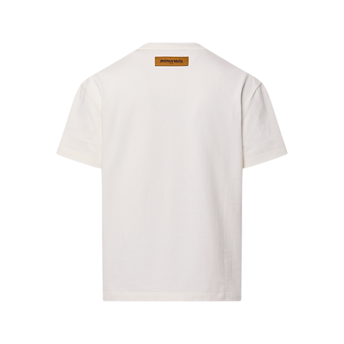 يزدان هذا التي شيرت القطن الأنيق ذو اللون الأبيض المصفر بتوقيع "Marque L. Vuitton déposée" المميز المستوحى من تصاميم الأرشيف، والذي طرحه المصمم Pharrell Williams في عرض ربيع وصيف 2024. والتوقيع مطرز بمزيج من اللؤلؤ والخيوط، ما يعكس السمات المحورية للمجموعة المستوحاة من الطابع المنمق. تكتمل روعة هذه القطعة، التي تضيف لمسة أنيقة على الإطلالة غير الرسمية، مع ملصق مقلوب مطرز باللؤلؤ على الظهر.