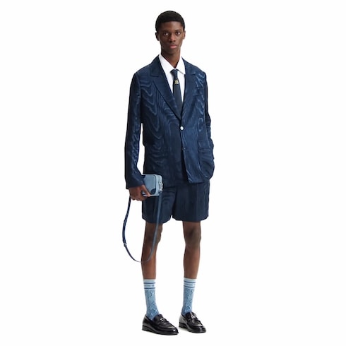 تجمع هذه السترة الراقية بين التصميم المريح وشعار LV Moiré الذي تتفرد به هذه المجموعة، وهو مُحاك في قماش الجاكار من مزيج الحرير اللامع مع توقيعات Monogram خفيّة. يزدان التصميم الانسيابي غير المبطّن بأزرار بتأثير عرق اللؤلؤ وشارات تحمل توقيع العلامة على الظهر والكم الأيسر. ويمكن تنسيق هذه السترة مع شورت مطابق بطيات للتمتع بإطلالة أنيقة ومريحة مستوحاة من الرحلات البحرية.