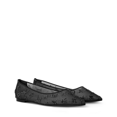 يتمتّع حذاء باليرينا Gala بتصميم سهل الانتعال وجذاب، وهو مصنوع من قماش شبكي مطرز بأحجار الراين التي تتّخذ شكل نقشة Monogram الخاصّة بدار لويس فويتون. يكشف القماش الشبكي شبه الشفاف عن شكل القدم برقة فائقة، فيما تمنح أحجار الراين البرّاقة تأثيرًا شبيهًا بالمجوهرات. ويتميّز حذاء الباليرينا الأنيق والمفعم بالأنوثة هذا بنعل خارجي مصنوع من الجلد الفاخر.