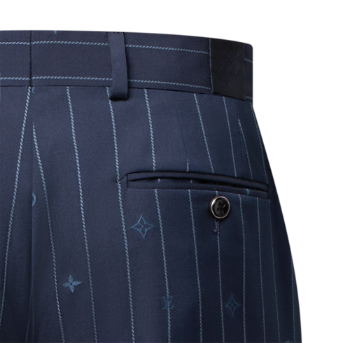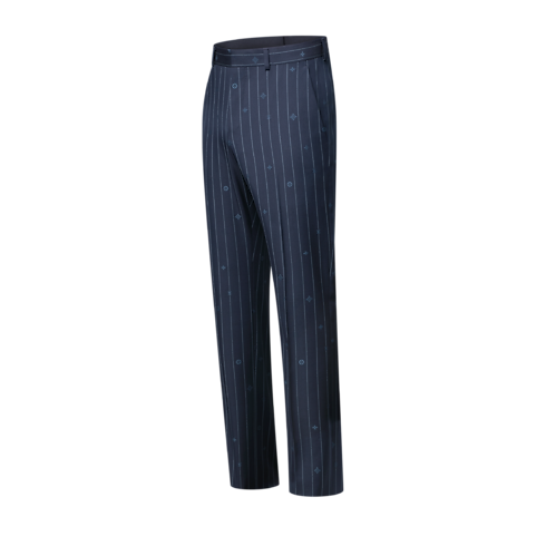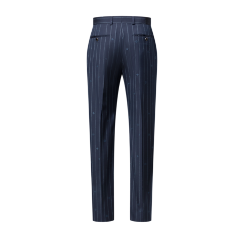 يتلاعب هذا البنطال الضيق الأزرق الداكن بقواعد الحياكة، حيث يعيد تقديم نقشة التقليمات الكلاسيكية والتي تظهر هنا على شكل خطوط جاكارد Monogram Pinstripes باللون نفسه مع عناصر Monogram الموزعة بين التقليمات. صُنع هذا البنطال الرائع من الصوف الفاخر، ويمكن ارتداؤه مع جاكيت مطابق للحصول على بدلة عصرية رائعة.