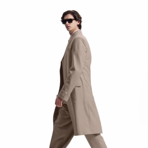 يزدان هذا المعطف، المصنوع من الصوف، بنقشة LV Moiré الغرافيكية من المجموعة، والمصورة هنا بجاكار باللون نفسه مع إضافات رقيقة لتوقيعات LV وزهرة Monogram. تُضيف الشعارات الأيقونية المحبوكة على الكُم الأيسر والظهر لمسة مميزة، بينما تساهم درجات اللون البيج الفاتح والتصميم غير المبطن في أن يغدو هذا المطف قطعة خارجية أنيقة وخفيفة يمكن تنسيقها مع قطع أخرى في فصل الربيع.