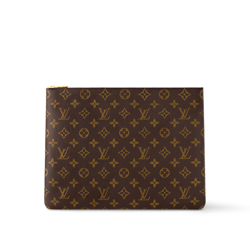 يمكن حفظ المستندات المهمة بطريقة منظمة داخل حقيبة Pochette Clés L الجديدة، وهي إضافة عصرية للمجموعة الكلاسيكية التي أطلقتها الدار في الثمانينات من القرن الماضي. هذا التصميم الأنيق مصنوع من قماش بنقشة Monogram المميز، ويزدان بإكسسوارات معدنية كلاسيكية باللون الذهبي. وتأتي الحقيبة بحجم يتسع لجهاز كمبيوتر محمول إلى جانب المستندات، ويمكن حملها باليد أو وضعها بأناقة داخل حقيبة أكبر أو حقيبة سفر.