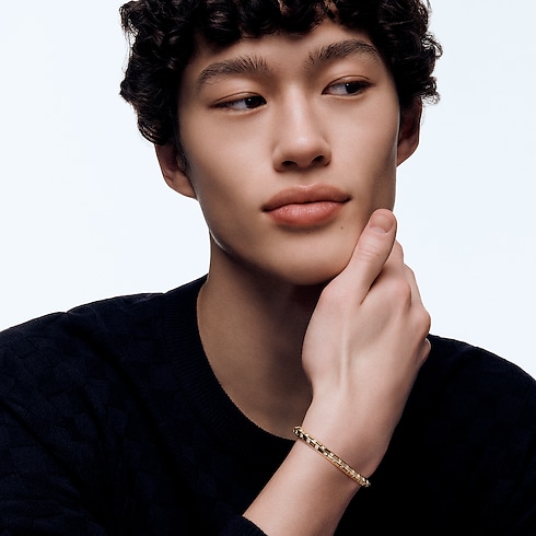 يمنح الأسلوب الجرافيكي المحايد بين الجنسين لسوار Le Damier من Louis Vuitton طابعًا فريدًا يجمع بين فنون العصر الحديث والتراث الكلاسيكي. صُنعت الحلقة بدقة من ذهب أصفر عيار 18 مصقول يدويًا وهي مرصعة بألماس برّاق، ويستلهم تصميمها شكل Damier الأيقوني للدار، وهو رمز صالح لكل زمان لللانهاية أبدعه لويس وجورج-لويس فويتون عام 1888. صُمم السوار ليتناغم مع جواهر أخرى، ويُعد هذا السوار الاستثنائية مخصصة للاستخدام اليومي – ولتُرتدى باستمرار، لتصبح بمثابة بشرة ثانية حقيقية.