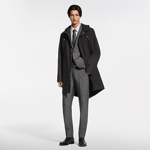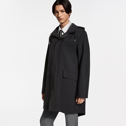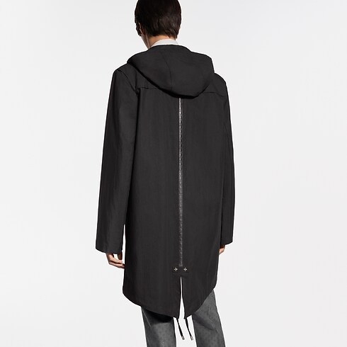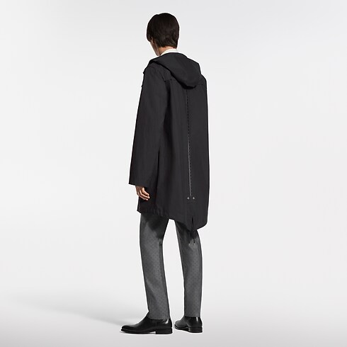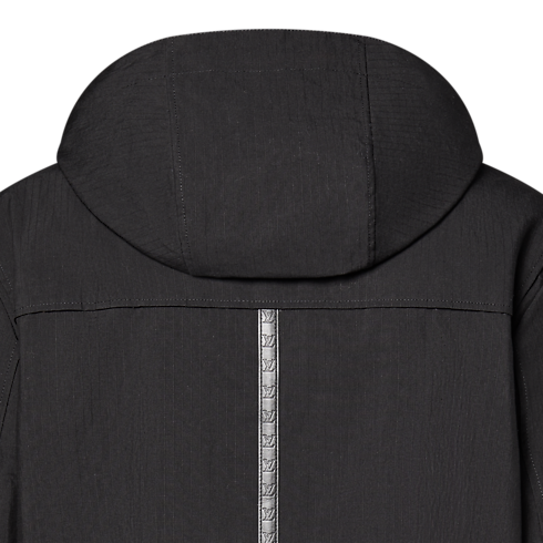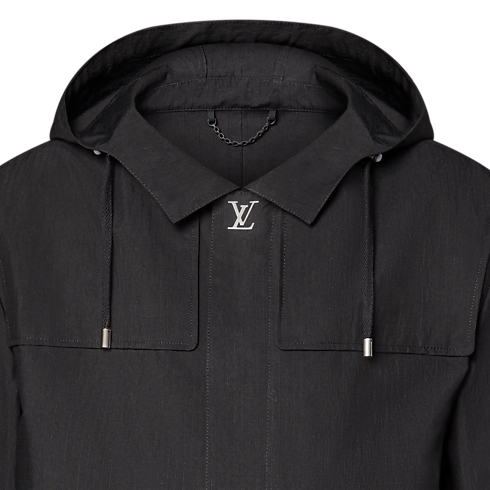 تُعد سترة الباركا السوداء المقاومة للماء والمزودة بغطاء رأس هذه، طبقةً خارجيةً خفيفةً تجمع بين الأناقة والسِمات العملية، وقد صُنعت من نسيج قطن الريبستوب التقني. وترتقي التفاصيل المتطورة بالقصة البسيطة للقطعة، حيث تزدان بزر كبس LV في أعلى فتحة السحاب، وثقوب ومسامير على شكل زهرة Monogram، بالإضافة إلى شريط جلدي بارز الملمس يزدان بنمط LV Lozine على الظهر، في إشادةٍ بتراث الدار العريق في عالم السفر. وتُعد هذه السترة خيارًا متعدد الاستخدامات، تلائم إطلالات العمل أو عطلات نهاية الأسبوع.