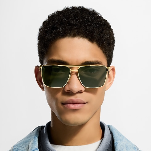 نظارات LV Attitude الشمسية من الموديلات الأيقونية المعروفة، وها هي تدخل إلى مستوىً عصري جديد بفضل شكلها المربع بالغ الأناقة. ويتميز التصميم المصنوع من معدن ذهبي اللون بعدسات خضراء وأذرع مزخرفة بنقشة Damier ذات المربعات، ولها أطراف أذرع ووسادات أنف قابلة للتعديل من الكريستال الأخضر، وهي سمات تضمن راحة تستمر طويلًا.