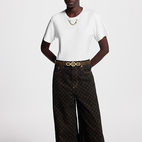 يضيف مشبك LV Circle Prime لمسة متميّزة إلى هذا الحزام الرفيع الملائم لمختلف الملابس، في حين يزدان التصميم ذو الوجهين بقماش Monogram الذي يرمز إلى عراقة الدار على أحد الوجوه، وجلد العجل باللون الكريمي على الوجه الآخر لمظهرٍ أكثر تأنقًا. يمكن تنسيق الحزام بسهولة مع الملابس الرسمية وغير الرسمية، ويتوافق بشكل مثالي مع أحذية LV Circle Prime.