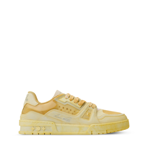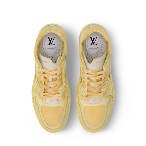 صُمم هذا الإصدار من حذاء LV Trainer الرياضي الأيقوني ليتناسب مع أجواء الإبحار، حيث يتميز بجزء علوي مقاوم للماء، مصنوع من مزيج من الخامات المعالجة، إلى جانب نعل خارجي مطاطي تم تطويره خصيصاً لتعزيز التماسك والثبات. ويبرز الجزء العلوي من الحذاء بتدرجات لونية راقية تم الحصول عليها من خلال غمره في محلول الصباغة، حيث تُمتص الألوان بشكل مختلف بحسب نوعية المواد المستخدمة.
