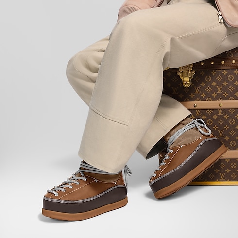صُنع حذاء LV Yeti متوسط الطول من عدة خامات مختلفة، مثل شمواه جلد العجل وجلد نوبوك بدون نقشة، كما يحمل نقشة Monogram على بعض أجزاء منه. استوحيت مجموعة LV Yeti من التقليد الياباني لخلع الأحذية عند دخول المنزل، ما يجعل سهولة الارتداء عاملًا جوهريًا في ملابس الشارع اليابانية. يجمع هذا الموديل بين التصميم الأنيق والميزات العملية، ويمزج بين الإحساس بالراحة والتفاصيل الراقية، بما في ذلك عروات على شكل زهرة Monogram وقطعة من الجلد على الكعب للإشارة إلى تراث الدار.