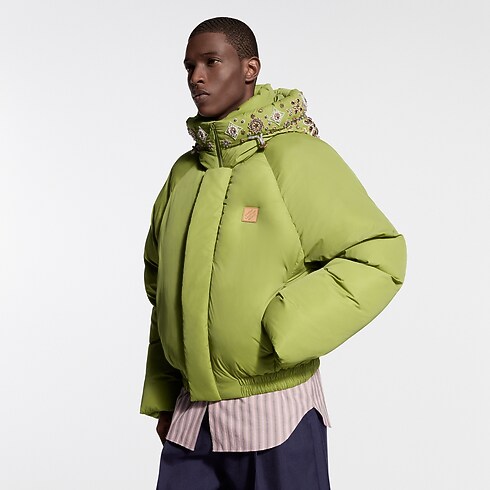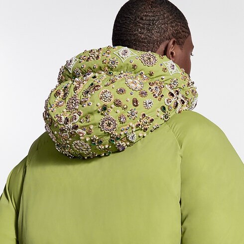 جاكيت Puffer مزوّد بغطاء للرأس مزخرف، يُصنع حسب الطلب