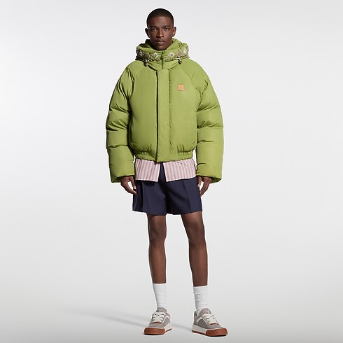 يتميز هذا الجاكيت بدرجة زاهية من اللون الأخضر، ويُصنع حسب الطلب. ظهر الجاكيت في عرض أزياء ربيع وصيف 2026، وهو مستوحى من فكرة تسلق الجبال لهذا الموسم. يحيط التصميم بالجسم بأريحية، ويكتمل من الأعلى بغطاء للرأس مُطعّم بحجر، في لمسة مستوحاة من الحِرف اليدوية الهندية الراقية التي تميزها آلاف الكريستالات وقطع الخرز المُطرزة يدويًا بدقة متناهية. وتُتمم روعة هذه القطعة المميزة شارة ملونة من جلد VVN تحمل توقيع الدار على الصدر.