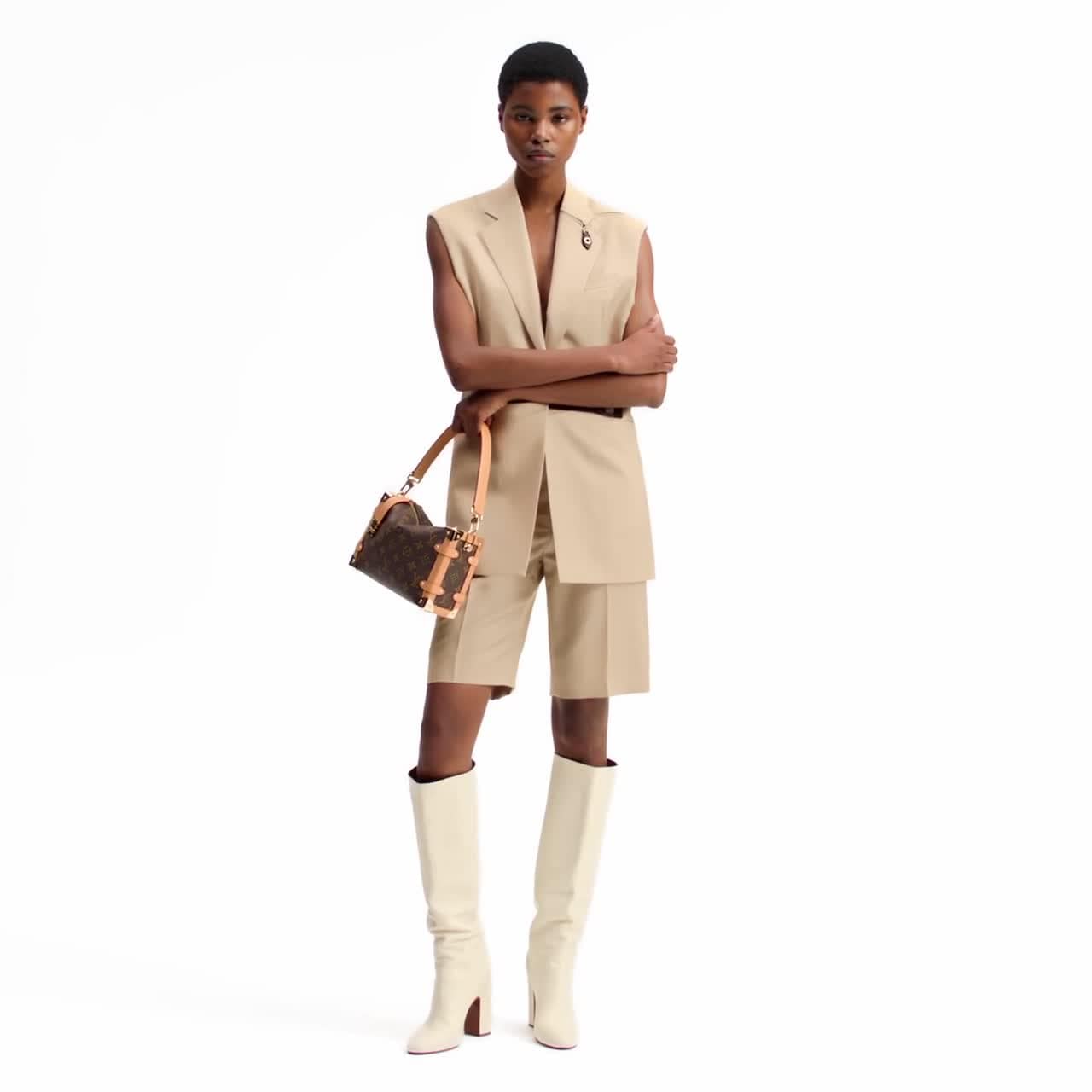 طُرح هذا البليزر في قصّة بدون أكمام ذات لمسات عصرية، لإطلالة جذابة وأنيقة. صُنعت هذه القطعة من مزيج فاخر من الصوف والموهير الناعم بلون سهل التنسيق مع قطع أخرى. ويتميز هذا الموديل بياقة أنيقة مدببة ومزدانة بسحاب مرح، بينما يُزين زر الإغلاق عروة بنسيج يحمل نقشة Monogram، في توقيع مميز للدار.
