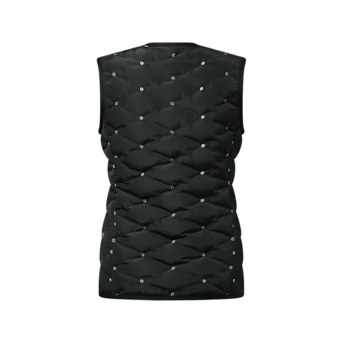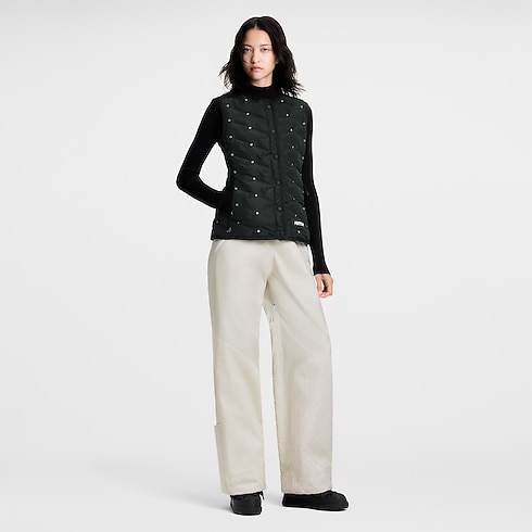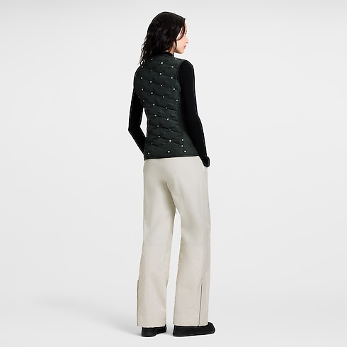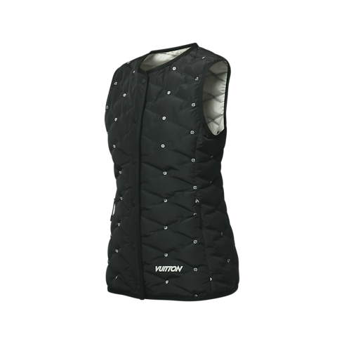 يندمج هذا الجيليه بسهولة ضمن إطلالات التزلج التقنية بتصميم طويل وانسيابي مع ياقة نظيفة وإغلاق عملي بأزرار كبس. تم قصّها من نايلون مبطن خفيف للغاية ومعزول بحشوة الريش لتوفير دفء إضافي. تضيف لمسات زهور Monogram الصغيرة توقيعاً أنيقاً على التصميم بالكامل، بينما تزين طبعة "Vuitton" الرياضية الورك الأيسر.