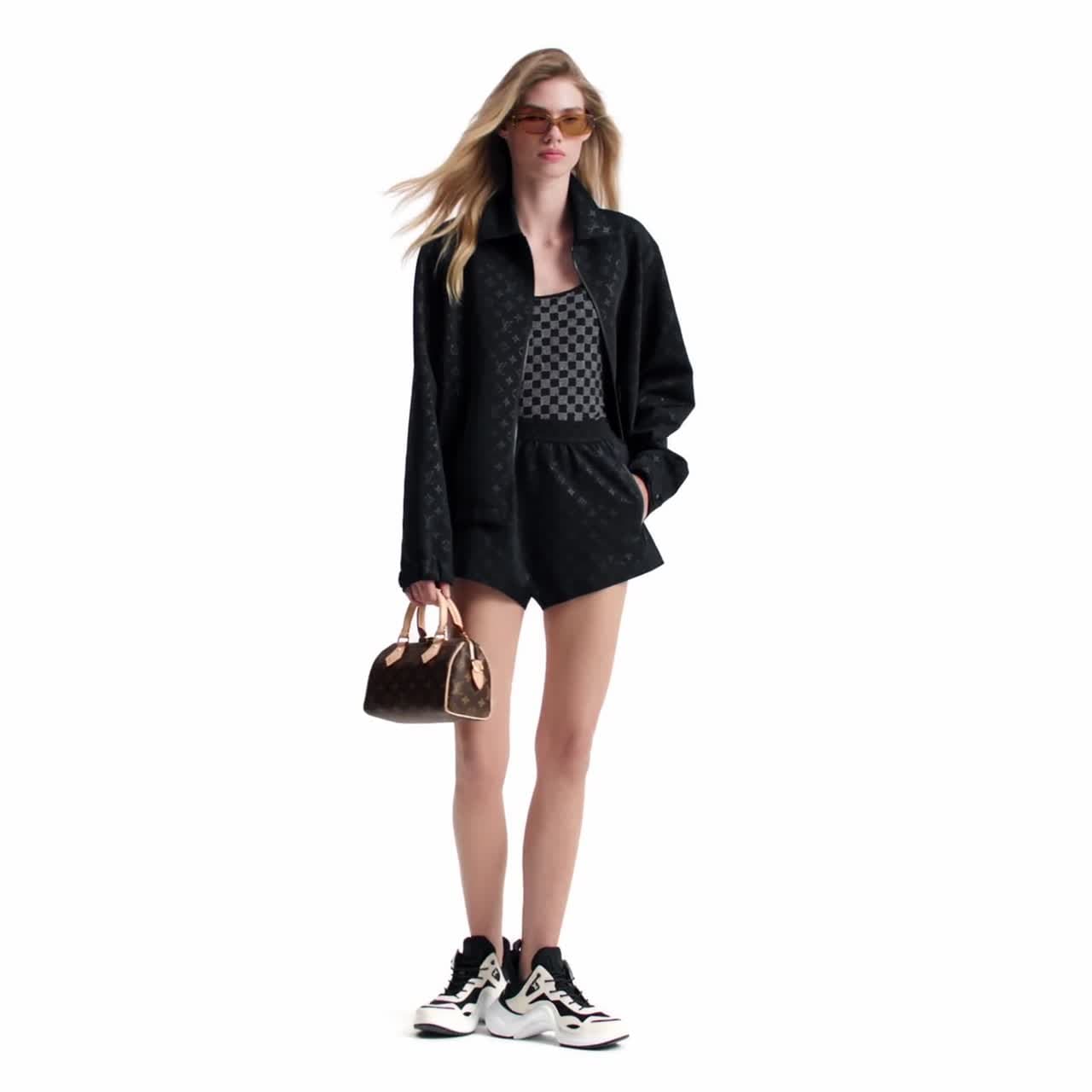 يزدان هذا الجاكيت الأنيق بنقشة Monogram لامعة خفية من نفس اللون تغطيه بالكامل، والتي طُبعت على قماش الجيرسي المعالج الأيقوني للدار، ما يمنح الجاكيت لمسة نهائية رياضية مميزة. صُنع الجاكيت بقياس مريح مع ياقة مسطحة وأساور أكمام محبوكة. يأتي الجاكيت بجيب أمامي وجيبين جانبيين بسحابات للإغلاق.