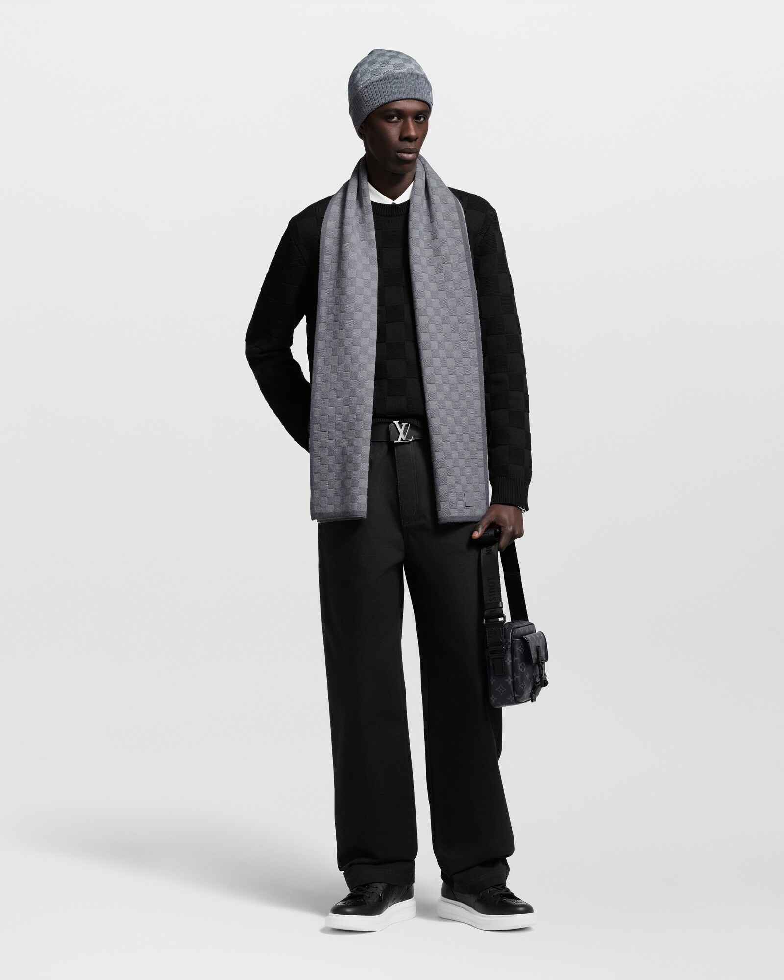 يتميز وشاح Neo Petit Damier بتصميم من الصوف المريح الثقيل المناسب لبرد الشتاء. ويزدان الوشاح بنمط Neo Petit Damier الجديد وشارة تحمل توقيع Louis Vuitton المحاك عليها يدويًا. ويأتي هذا الوشاح بتصميم بلون موحد وتأثير ثلاثي الأبعاد تبرز جماله الأطراف الناعمة للقطعة.