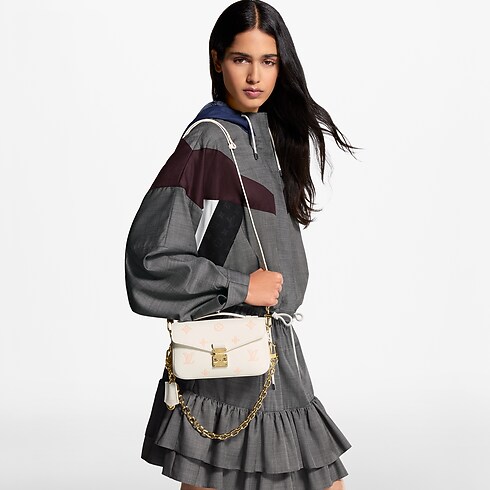 بتصميم جديد يجمع بين الأبيض الحليبي والخوخي في لوحة ألوان ثنائية، تتوفر حقيبة Pochette Métis East West في هذه النسخة كخيار أنيق لعطلة نهاية الأسبوع. صُنعت من جلد نقشة Monogram Empreinte الفاخر، وزُوِّدت بإكسسوارات معدنية باللون الذهبي الفاتح، بما في ذلك قفل s-lock الأيقوني للدار. تضم ثلاث مساحات تخزين لتنظيم أغراضك، بالإضافة إلى جيب بسحاب خارجي.