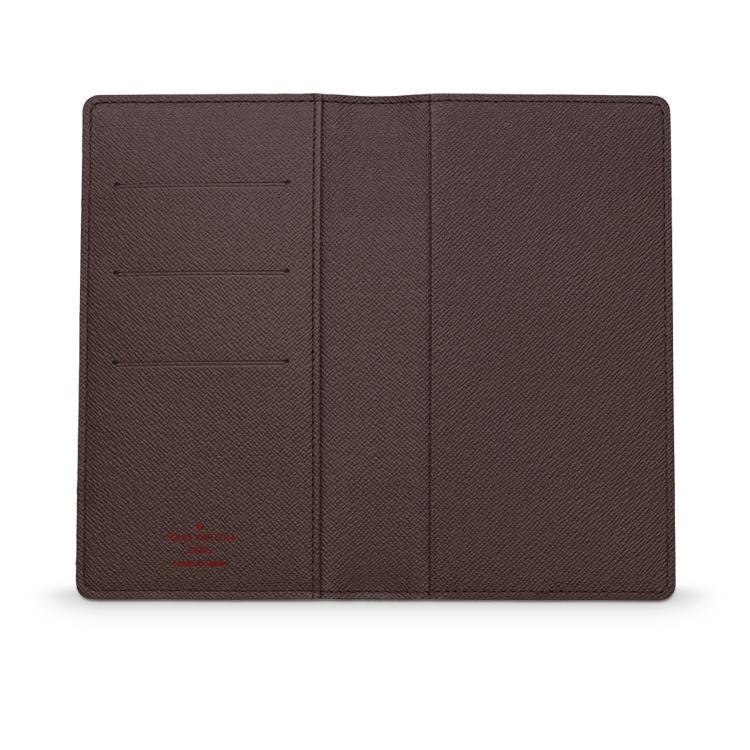 يتميز غلاف المفكرة بتصميم مثالي متعدد الاستخدامات من قماش بنقشة Damier يمكن وضعه بكل سهولة في جيب الجاكيت أو حقيبة السفر أو حقيبة اليد، كما يتسم بتقسيم داخلي فريد مزوّد بثلاث فتحات لبطاقات الائتمان وجيب واحد طويل.