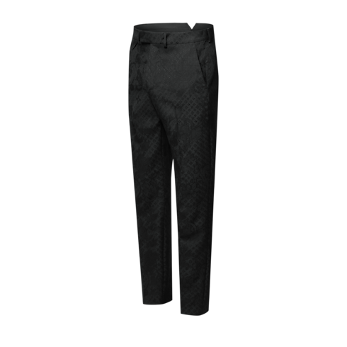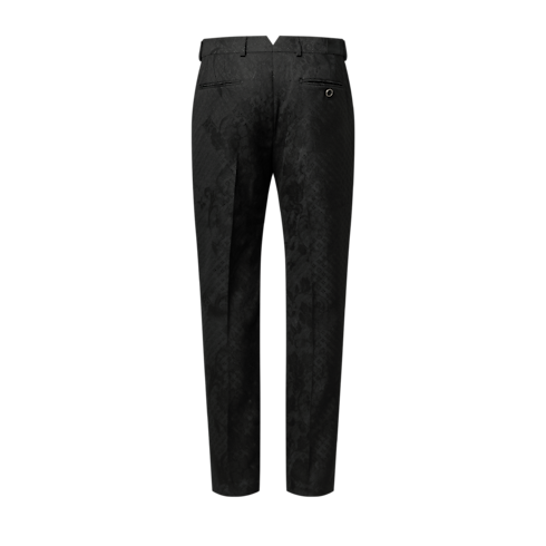 صُنع بنطال السهرة الأنيق هذا من صوف فاخر أسود اللون، مع تفاصيل بالجاكار تعرض نقشة Monogram Wildflowers بلون القطعة نفسه، ولمسات نهائية بارزة من نسيج فاخر. صُمم البنطال بمقاس Pont Neuf الأنيق، ويزدان بشارة على شكل مثلث مطرزة بالأحرف LV على الساق اليمنى من الأعلى، وشعار Marque L.Vuitton Déposée على شريط الخصر من الخلف. يتحول هذا البنطال إلى بدلة راقية عند تنسيقه مع جاكيت متطابق.