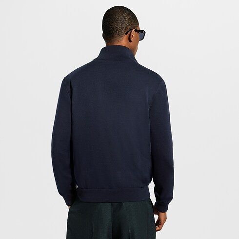 تأتي هذه السترة الرياضية الهجينة الأنيقة باللون الأزرق الداكن وهي قابلة للارتداء على الوجهين، ويمكن تنسيقها بطرق متعددة. ويأتي الجزء الخارجي منها بتصميم صالح لكل زمان، وهو محبوك من قطن عضوي فاخر، ويزدان عند الصدر بتوقيع LV المستوحى من جلد البقر الطبيعي، تكريمًا لخبرة الدار في صناعة المنتجات الجلدية. والجزء الداخلي المصنوع من نسيج تقني مزين بالكامل بنقشة Monogram ذات أجزاء لامعة وأخرى غير لامعة.