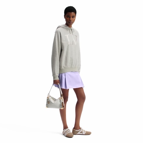 يتألق هذا الهودي الأساسي بتوقيع لامع مميز، وقد جاء في تصميم مريح مصنوع من جيرسي قطني مبطّن بصوف مخملي ناعم، مع حواف مضلعة لإطلالة غير رسمية رقيقة. يزدان الصدر بتوقيع بارز للأحرف الأولى LV Initials مرصّع بأحجار الراين المتلألئة، وتكتمل الإطلالة بإكسسوارات ذهبية اللون للمسة ميتاليك أنيقة.