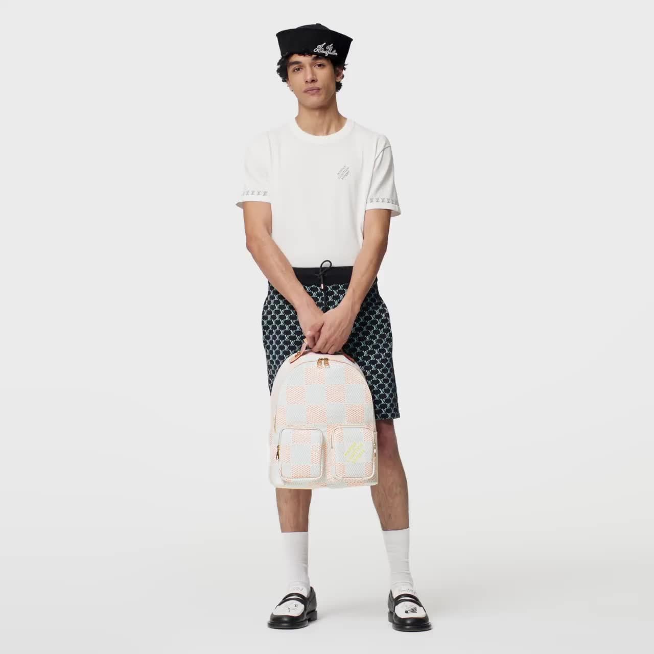 تتميز هذه الكنزة البيضاء قصيرة الأكمام الرائعة بنسيج محبوك من القطن العضوي، وتزدان بسمات جاكارد المتباينة الرقيقة. وتضم تلك السمات توقيع "Marque L.Vuitton déposée" على الصدر، وشريط الحروف الأولى LV حول الأكمام، ما يضيف إلى القطعة لمسة رسومية أنيقة. ويمكن ارتداء تلك القطعة بأشكال مختلفة لتضيف لمسة مميزة إلى الإطلالات اليومية.