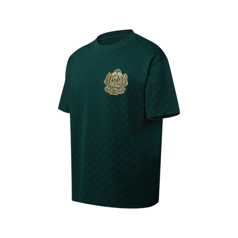 استلهم هذا التي شيرت العادي المرح بلونه الأخضر الغني تصميمه المميز من موضوع محبي تمشية الكلاب في منطقة "وستمنستر" لهذه المجموعة. وهو مصنوع من بيكيه القطن الطبيعي مع جاكار Damier بملمس بارز، ومزدان بتوقيعات مطرزة باللون الذهبي تشمل شعار النبالة الزخرفي LV Dog على الصدر. وهذا التي شيرت مثالي لاحتفالات نهاية العام، فهو يضيف لمسات راقية على أي إطلالة غير رسمية.