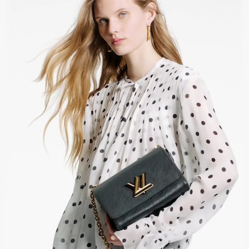 صُنعت حقيبة Twist MM المزودة بسلسلة، من جلد Epi المميز من الدار. ويقدم تصميمها قفل LV Twist الأيقوني في شكل جديد منحوت على قطعة إكسسوار مصنوعة من المعدن الفاخر بلون ذهبي لامع. هذه الحقيبة واسعة للغاية بفضل قاعدتها المصممة بمهارة على شكل "مموج"، وهي قطعة جميلة مواكبة لآخر صيحات الموضة ورفيق ممتاز من الصباح حتى المساء. زودت الحقيبة أيضًا بحزام بسلسلة متحركة، يمكن تعديل طوله ليصبح أقصر مما يسمح بارتدائها على الكتف، أو الإبقاء عليه ممتدًا لارتدائها حول الجسم. تنتمي حقيبة Twist إلى مجموعة حقائب New Classic المميزة التي تنتجها الدار، وقد طُرحت لأول مرة ضمن عرض Cruise لعام 2015.
