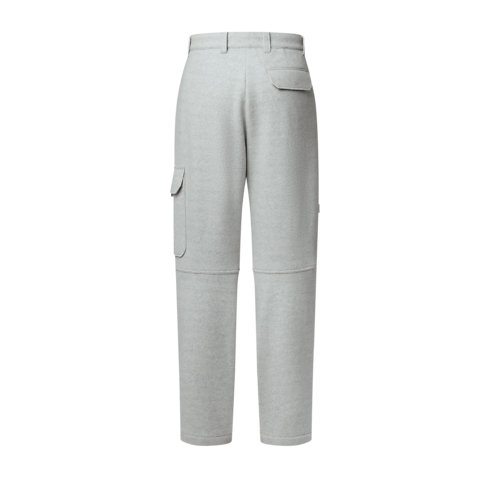 صُنع هذا البنطال الكارجو من صوف معاد تدويره بلون رمادي شاحب، وهو اختيار مريح وأنيق لأيام الشتاء. ويتميز البنطال بإطلالة مستوحاة من ملابس العمل، ويزدان بحلية LV على الساق اليمنى، وملصق محبوك عليه زهرة Monogram على الجيب بغطاء متدلي. وهذا التصميم العملي الرائع مثالي للسفر مع قميص علوي متوافق.