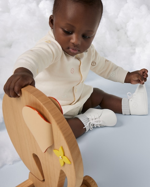 The Louis Vuitton Baby Collection offers an array of adorable, timeless pieces to celebrate the arrival of a newborn and accompany babies through their first precious months. Beautifully crafted from the finest materials and incorporating subtle and playful Louis Vuitton signatures, the selection of Ready-to-Wear, shoes, objects and accessories makes for perfect gifts that will be treasured for years.