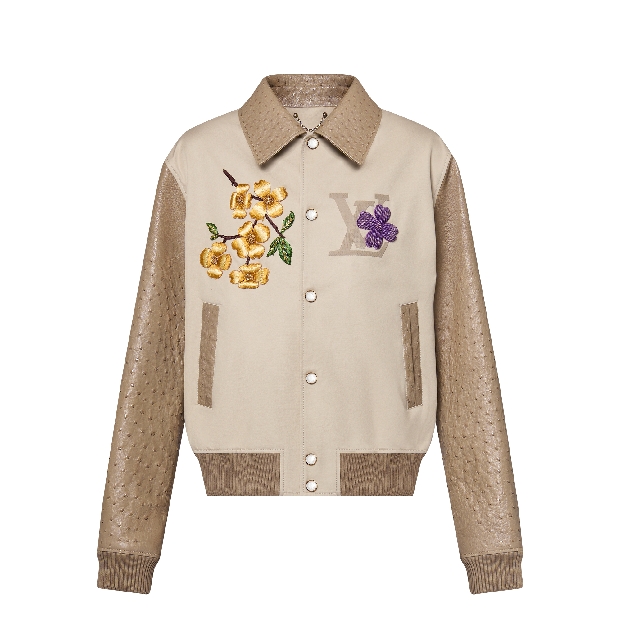 Embroidered Ostrich Varsity Jacket