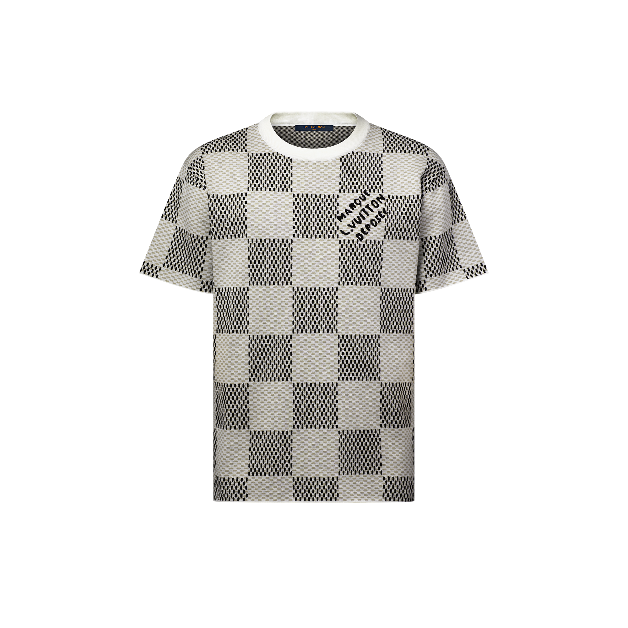 Jacquard Damier Short-Sleeved Cotton Crewneck