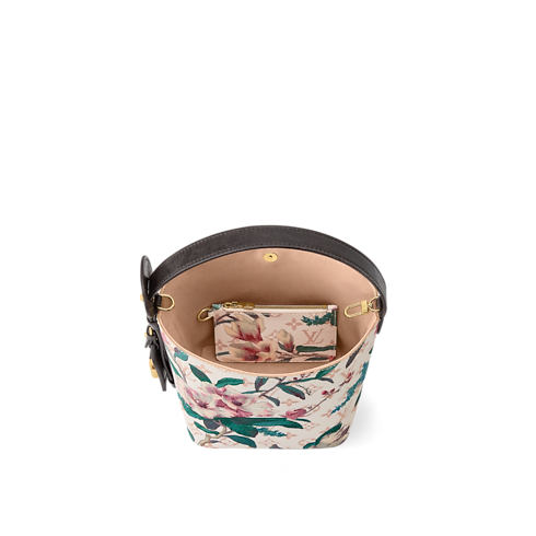 Reimagined as part of the Monogram Eden collection, this All In BB is crafted from Monogram Dune canvas elevated with a vibrant floral pattern. The classic bucket-shaped profile is trimmed with cowhide and accented with a gold-toned padlock and signature LV name tag. Inside, there is a removable zipped pouch and enough space to store a phone, wallet and keys.