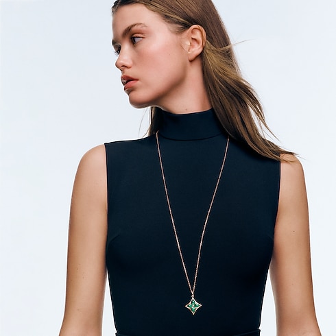 Colour Blossom celebrates the Monogram Flower, created in 1896 by Georges-Louis Vuitton. Set into 18-karat pink gold, the pendant's petals are carved from malachite. Perfect for layering, the medallion can be worn at three different lengths. Its bold size complements other pieces from the Colour Blossom Collection.