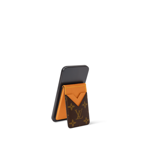 Made from Monogram canvas and natural cowhide leather, the Compact Magnet is a foldable magnetic wallet designed to attach to an iPhone. Compatible with any iPhone or case with MagSafe technology, it offers two front card slots and three inside ones. It also doubles as a stand, holding the phone upright on any flat surface.