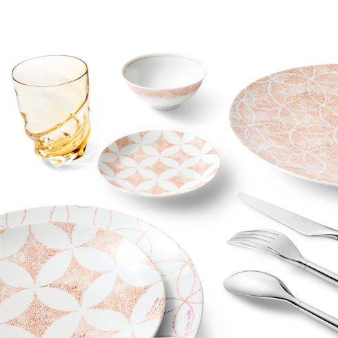 The creative, graphic Constellation pattern adorning this set of two bread plates was inspired by one of the House’s most iconic signatures. Rendered on fine porcelain, an intricately detailed motif reinterprets the emblematic Monogram Flower and Diamond with a delicate interplay of space and form. The perfect companion to the other creations from the same collection, these plates add a vibrant, eye-catching accent to an elegant table setting.