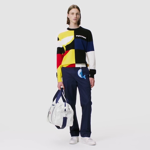 These timeless cargo pants from the Louis Vuitton 37th Americas Cup collection feature a discreet Damier on the side pockets and turnups. ‘Marque L.Vuitton déposée’ signatures grace both the Damier and the embroidered pocket tabs. An embroidered tricolor Gaston on a rear pocket adds a sporty final touch to this go-to summer essential.