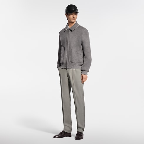 This elegant taupe reversible blouson has a softly rounded silhouette crafted from wool, cashmere and silk double-face fabric. The plain side is accented with a rhinestone signature on the chest and Monogram Flower embroidery on the pockets. A sophisticated jacquard Mini Flower Damier motif lends a graphic accent to the reverse. This versatile piece lends a contemporary accent to a modern formal look.