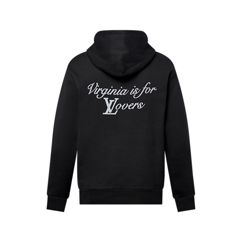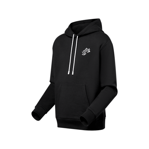This smart hoodie is made from brushed back cotton felpa and has a lined hood, kangaroo pocket and a ribbed bottom hem and cuffs. It features one of this season’s iconic colors, set off by contrasting white cords and an embroidered white Louis Vuitton signature on the chest, underlined by a matching staple pin.