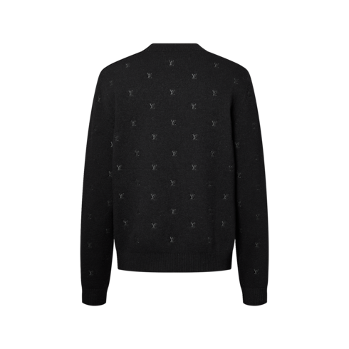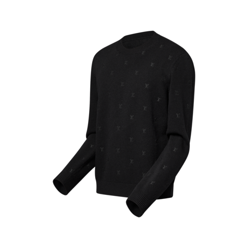 This timeless black crewneck in extra fine merino wool is a perfect transeasonal layer. It is ennobled with allover embroidery featuring the SS24 Show’s LV Blason motif, which is stitched in tonal yarn. Streamlined and elegant, this versatile piece can complete casual and more formal looks.